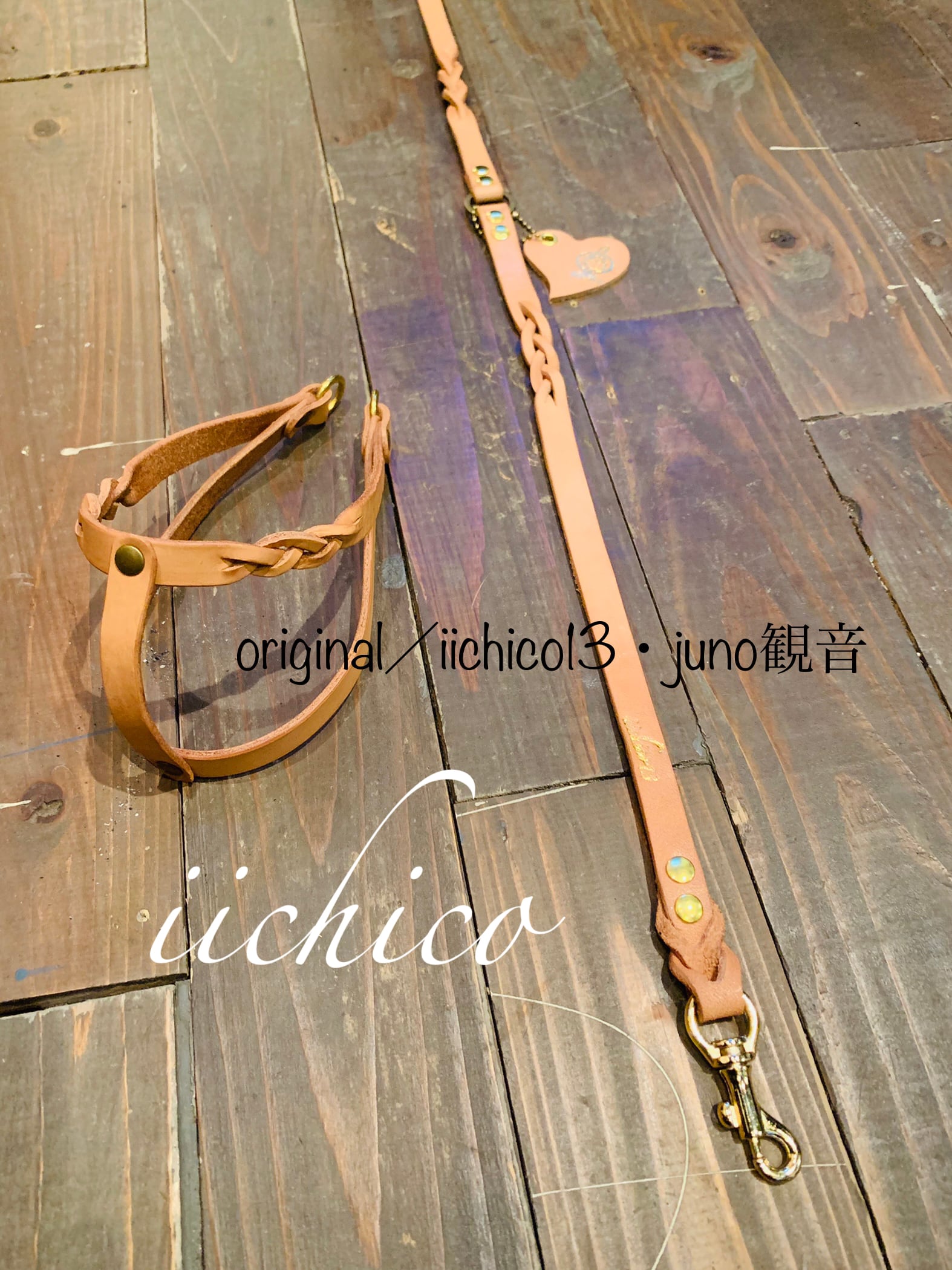 Allヌメ革リード&ハーネス編み込み2点SET❣️